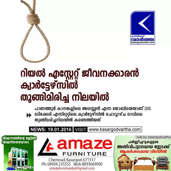 Keywords: Rajapuram, Obituary, Kasaragod, Madikeri, Kerala, Real estate broker found dead hanged