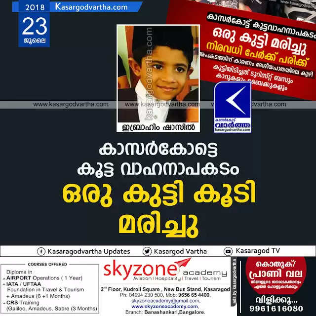 കാസര്‍കോട്ടെ കൂട്ട വാഹനാപകടം: ഒരു കുട്ടി കൂടി മരിച്ചു