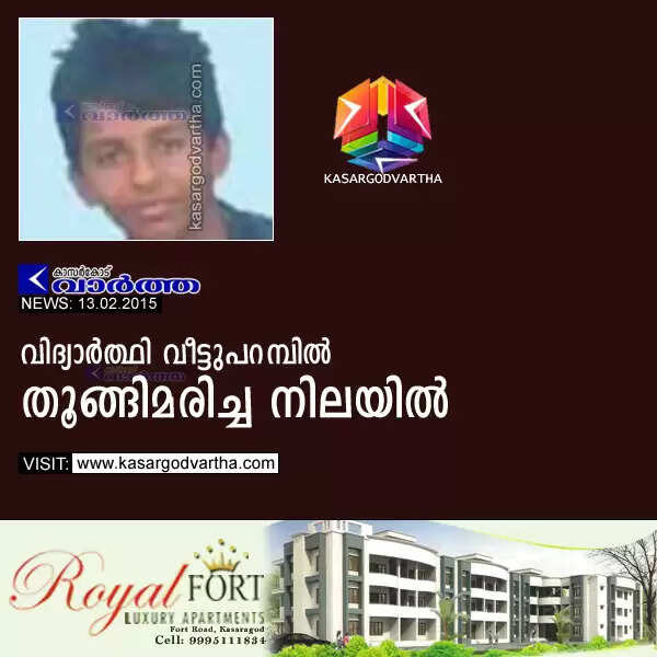 Keywords: Kasaragod, Kerala, Cheruvathur, died, Obituary, Student, Student found dead hanged.