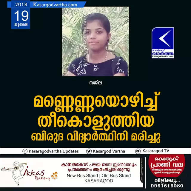 Keywords: Kasaragod, Obituary, Student, Kerala, Sajila, Student dies after burning injury