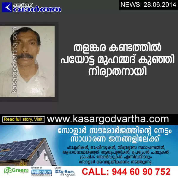 തളങ്കര കണ്ടത്തിലെ പയോട്ട മുഹമ്മദ്കുഞ്ഞി നിര്യാതനായി