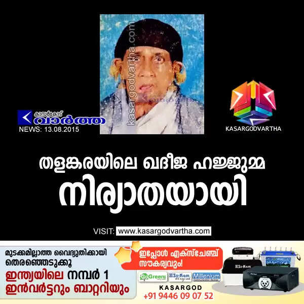 Keywords: Kasaragod, Obituary, Thalangara, Kerala, Thalangara Khadeeja Hajjumma passes away.