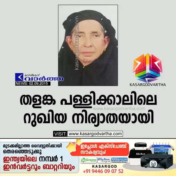 Keywords : Kasaragod, Kerala, Thalangara, Obituary, Thalangara Pallickal Rukiya passes away.