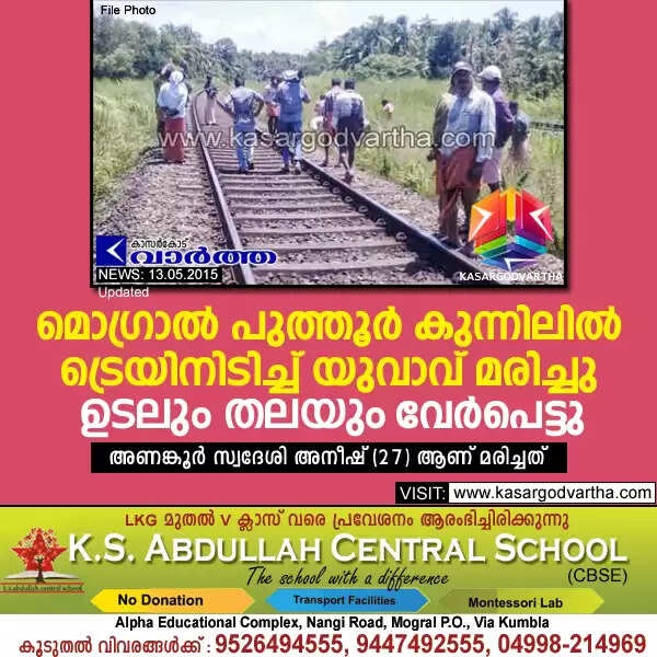 Keywords : Mogral puthur, Train, Accident, Obituary, Kerala, Kasaragod, Train Accident, Train hits: youngster dies.