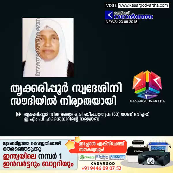 Keywords : Riyadh, Death, Obituary, Kasaragod, Kerala, Trikaripur, Beefathumma, Trikaripur native dies in Saudi.