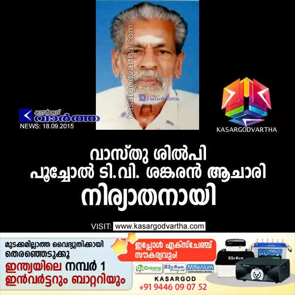 വാസ്തു ശില്പി പൂച്ചോല് ടി.വി. ശങ്കരന് ആചാരി നിര്യാതനായി