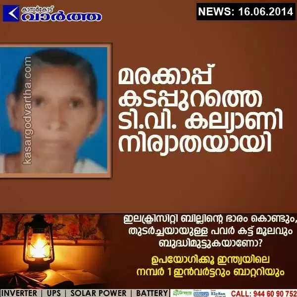 Keywords : Kasaragod, Neeleswaram, Died, Obituary, Housewife, T.V Kalyani,