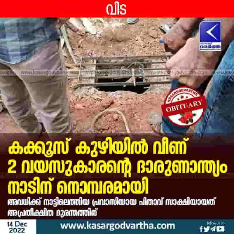 Boy Died | കക്കൂസ് കുഴിയില് വീണ് 2 വയസുകാരന്റെ ദാരുണാന്ത്യം നാടിന് നൊമ്പരമായി; അവധിക്ക് നാട്ടിലെത്തിയ പ്രവാസിയായ പിതാവ് സാക്ഷിയായത് അപ്രതീക്ഷിത ദുരന്തത്തിന്