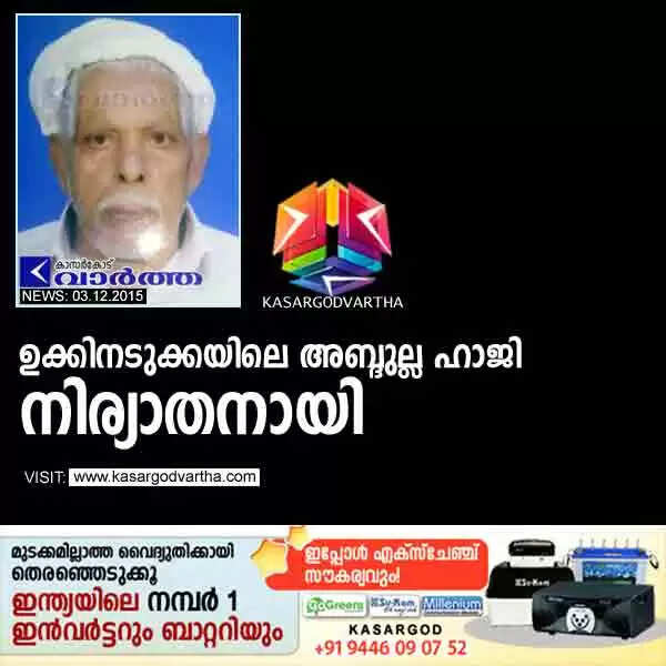 Keywords: Kumbala, Death, Obituary, Kasaragod, Kerala, Ukkinadukka, Ukkinadukka abdulla Haji passes away.