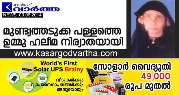 മുണ്ട്യത്തടുക്ക പള്ളത്തെ ഉമ്മു ഹലീമ നിര്യാതയായി