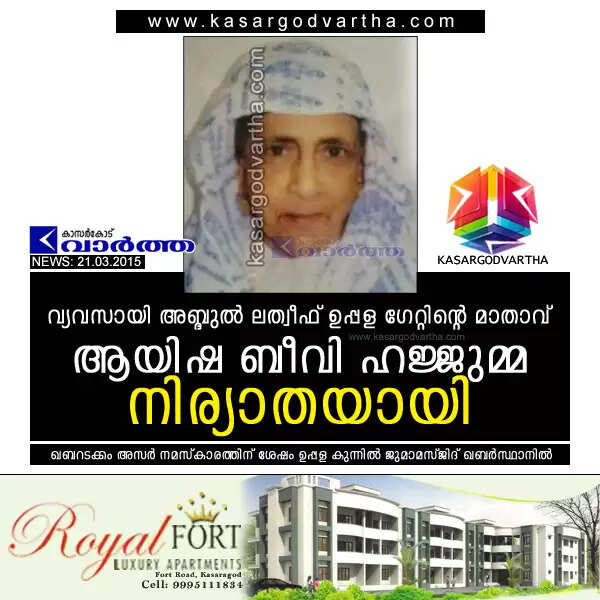വ്യവസായി അബ്ദുല് ലത്വീഫ് ഉപ്പള ഗേറ്റിന്റെ മാതാവ് ആയിഷ ബീവി ഹജ്ജുമ്മ നിര്യാതയായി