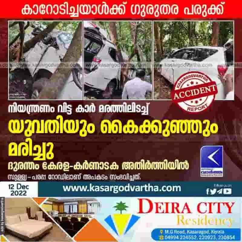 Died | നിയന്ത്രണം വിട്ട കാര്‍ മരത്തിലിടച്ച് യുവതിയും കൈക്കുഞ്ഞും മരിച്ചു; ദുരന്തം കേരള-കര്‍ണ്ണാടക അതിര്‍ത്തിയില്‍