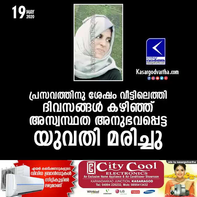 പ്രസവത്തിനു ശേഷം വീട്ടിലെത്തി ദിവസങ്ങള് കഴിഞ്ഞ് അസ്വസ്ഥത അനുഭവപ്പെട്ട യുവതി മരിച്ചു
