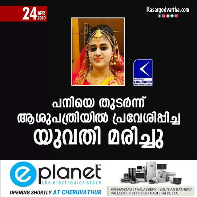 പനിയെ തുടര്‍ന്ന് ആശുപത്രിയില്‍ പ്രവേശിപ്പിച്ച യുവതി മരിച്ചു