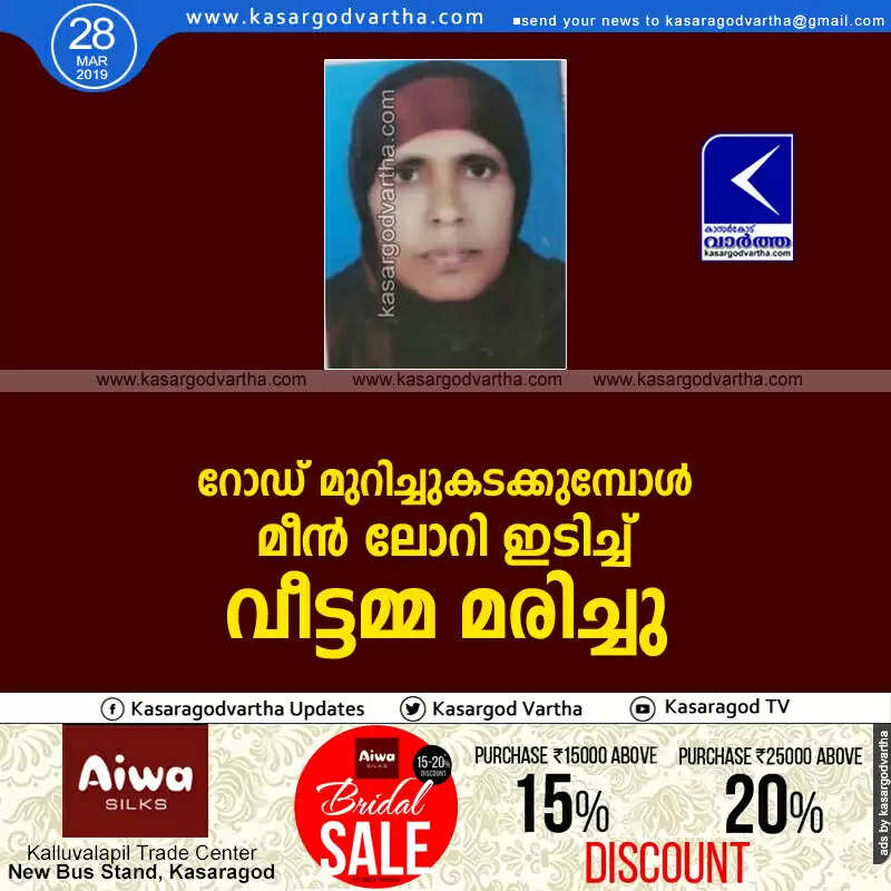റോഡ് മുറിച്ചുകടക്കുമ്പോള് മീന് ലോറി ഇടിച്ച് വീട്ടമ്മയ്ക്ക് ദാരുണാന്ത്യം