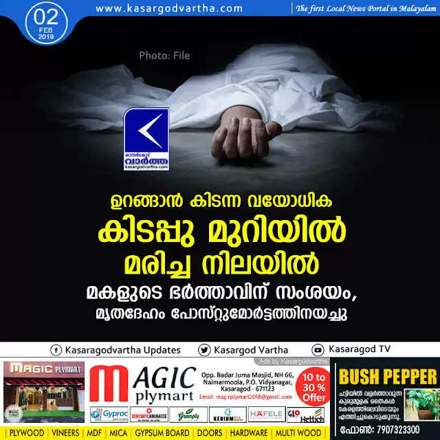 ഉറങ്ങാന് കിടന്ന വയോധിക കിടപ്പു മുറിയില് മരിച്ച നിലയില്; മകളുടെ ഭര്ത്താവിന് സംശയം, മൃതദേഹം പോസ്റ്റുമോര്ട്ടത്തിനയച്ചു
