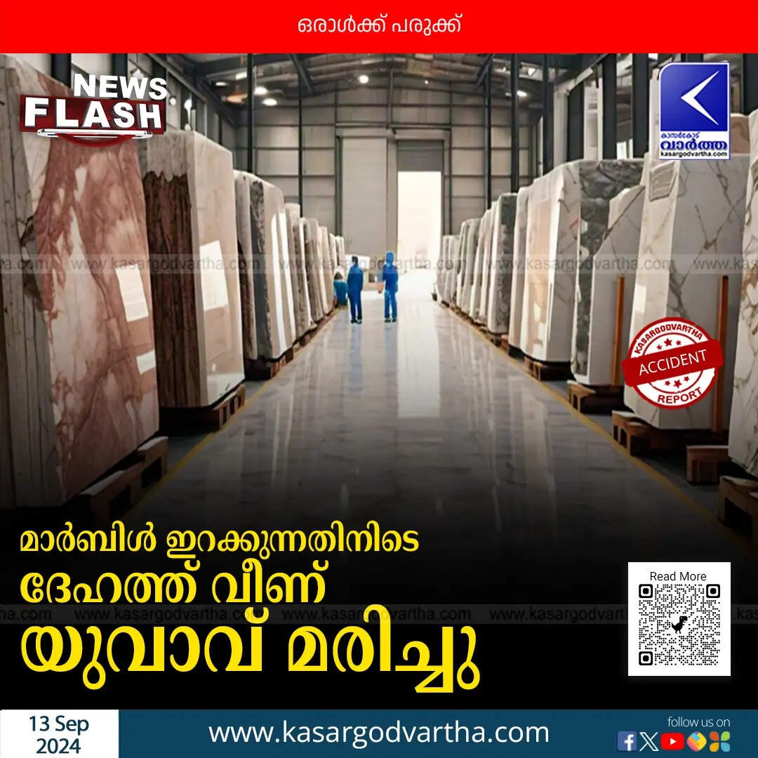 Tragedy | മാര്ബിള് ഇറക്കുന്നതിനിടെ ദേഹത്ത് വീണ് യുവാവ് മരിച്ചു