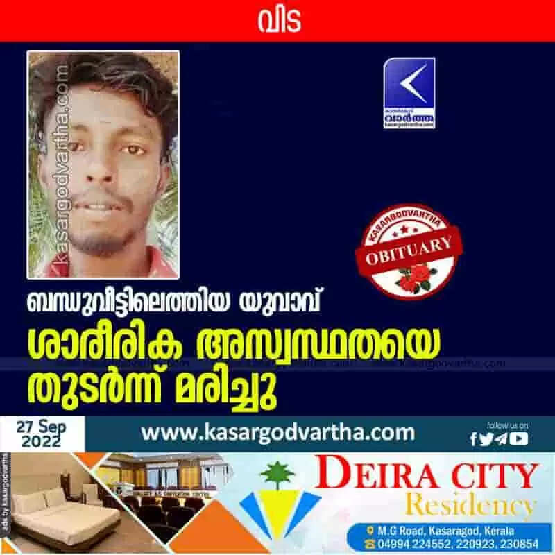 Keywords: Young man died at his relative's house, Kerala, Kasaragod, News, Obituary, Man, Hospital.