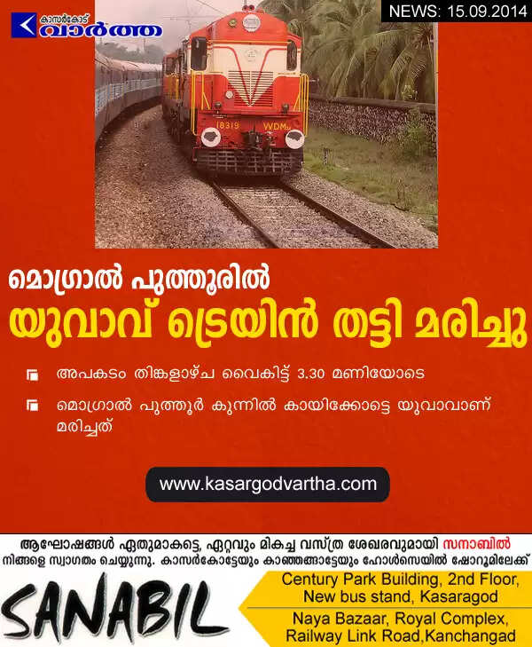 മൊഗ്രാല് പുത്തൂരില് യുവാവ് ട്രെയിന് തട്ടി മരിച്ചു