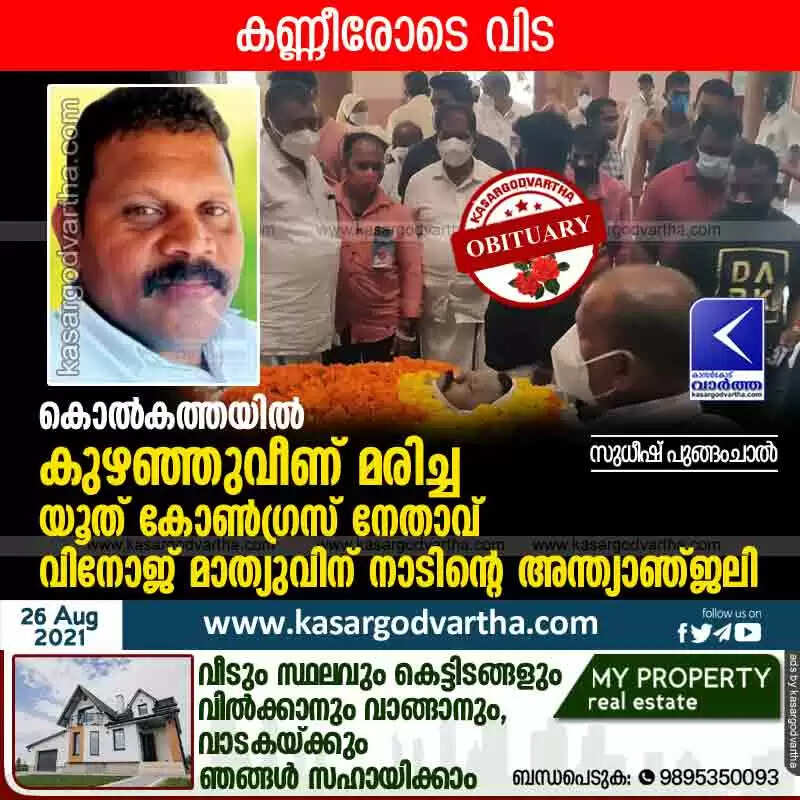 കൊൽകത്തയിൽ കുഴഞ്ഞുവീണ് മരിച്ച യൂത് കോൺഗ്രസ് നേതാവ് വിനോജ് മാത്യുവിന് നാടിന്റെ അന്ത്യാഞ്ജലി