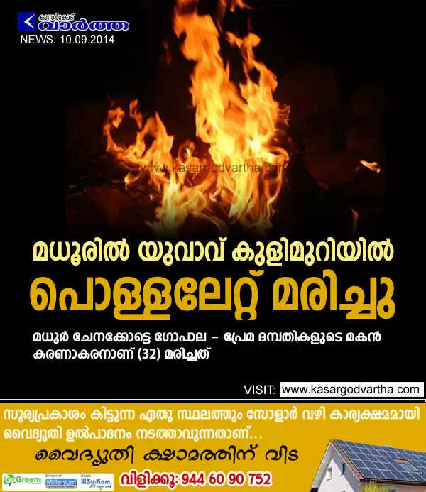 മധൂരില്‍ യുവാവ് കുളിമുറിയില്‍ പൊള്ളലേറ്റ് മരിച്ചു