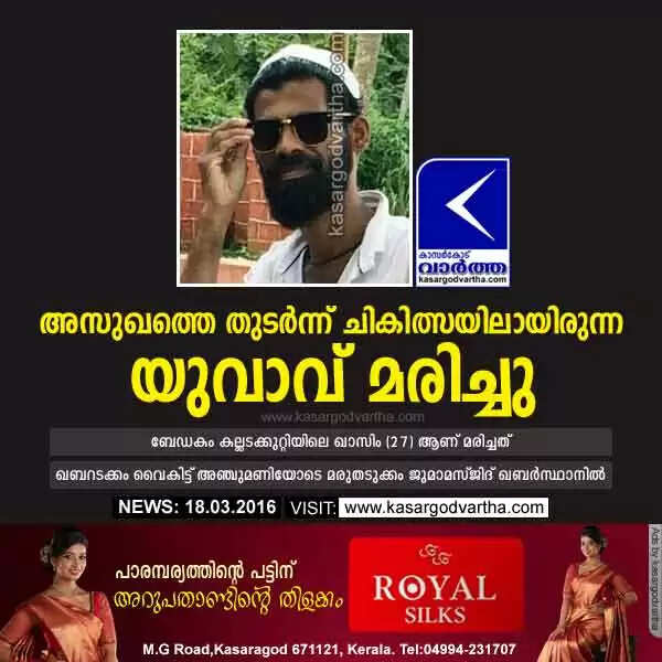 Keywords: Kasaragod, Kerala, Death, Obituary, Poinachi, hospital, Treatment, Youth, Bedakam, Youth dies after illness.