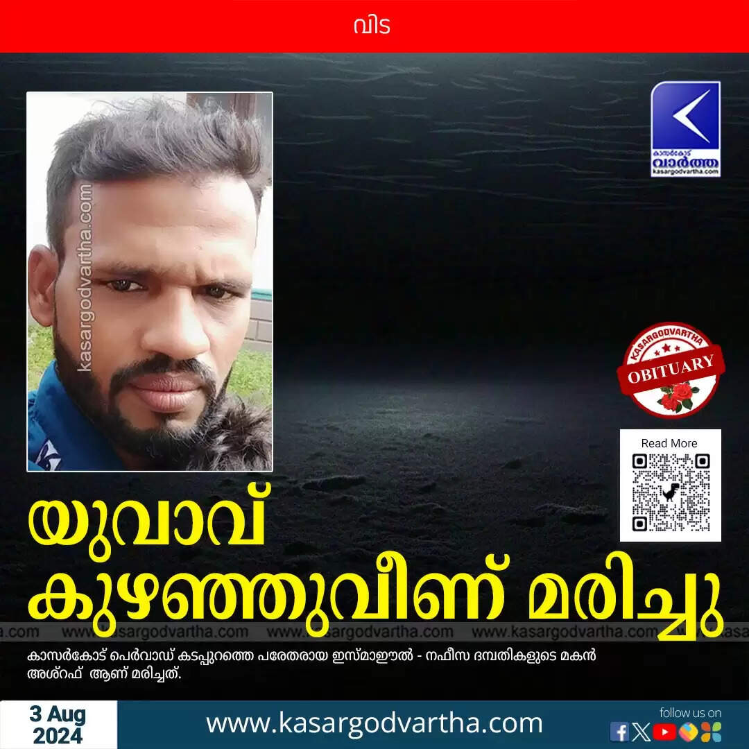 കുമ്പള: (KasargodVartha) യുവാവ് കുഴഞ്ഞുവീണ് മരിച്ചു. പെർവാഡ് കടപ്പുറത്തെ പരേതരായ ഇസ്മാഈൽ- നഫീസ ദമ്പതികളുടെ മകൻ അശ്റഫ് കുക് (40) ആണ് മരിച്ചത്. വെള്ളിയാഴ്ച രാത്രിയാണ് മരണപ്പെട്ടത്. ഹൃദായാഘാതമെന്നാണ് നിഗമനം.