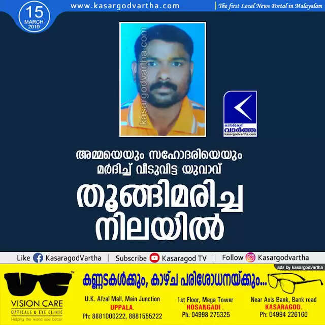 അമ്മയെയും സഹോദരിയെയും മര്ദിച്ച് വീടുവിട്ട യുവാവ് തൂങ്ങിമരിച്ച നിലയില്