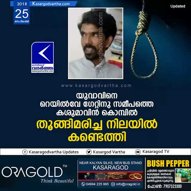 യുവാവിനെ റെയില്വേ ഗേറ്റിനു സമീപത്തെ കശുമാവിന് കൊമ്പില് തൂങ്ങിമരിച്ച നിലയില് കണ്ടെത്തി