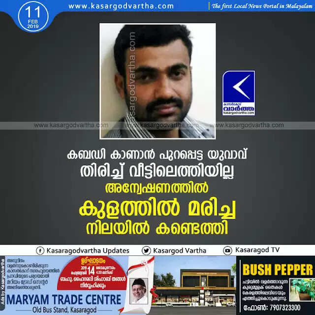 കബഡി കാണാന് പുറപ്പെട്ട യുവാവ് തിരിച്ച് വീട്ടിലെത്തിയില്ല; അന്വേഷണത്തില് കുളത്തില് മരിച്ച നിലയില് കണ്ടെത്തി