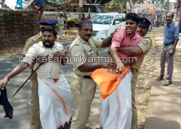Keywords: Kerala, kasaragod, news, ABVP, Political party, Politics, Abvp Black Flag against Minister A.K Balan