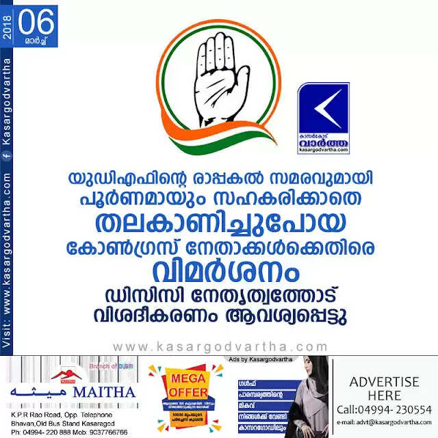 Keywords: Kasaragod, Kerala, news, Top-Headlines, Political party, Politics, Protest, Action against congress leaders who not participated in UDF Strike < !- START disable copy paste -->