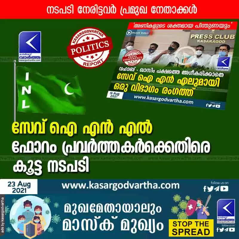 Keywords: Kerala, Kasaragod, Top-Headlines, Political, Politics, INL, Saved, NYL, Membership, Secretary, Committee, Action against Save INL Forum activists.