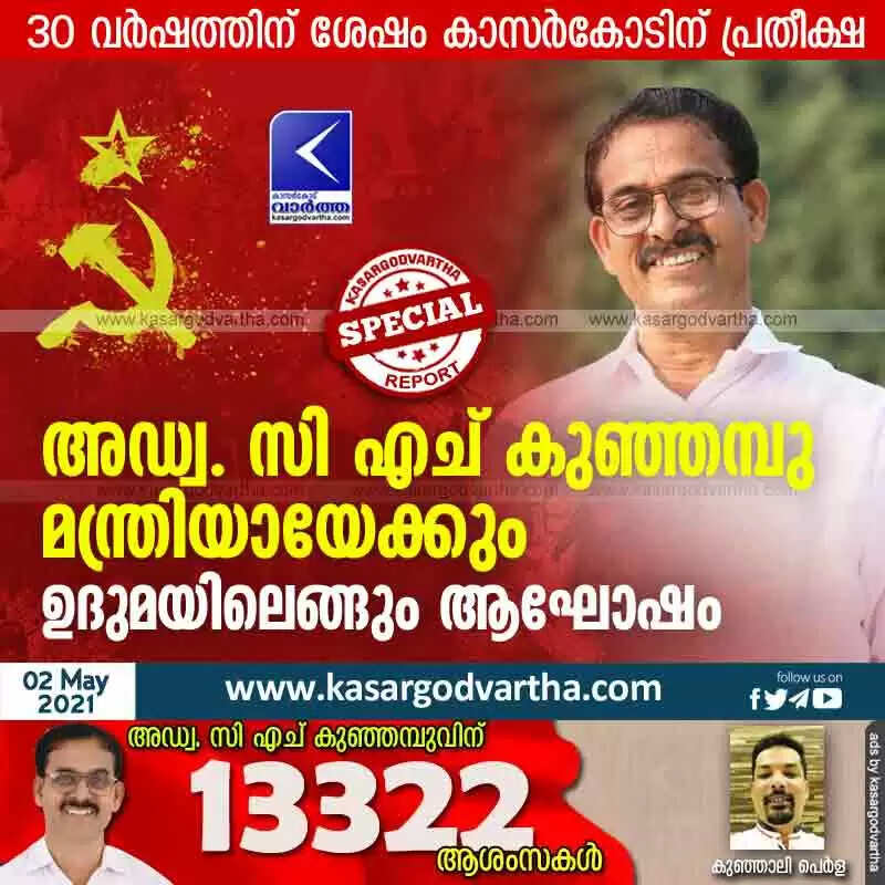 കാസർകോട്: (www.kasargodvartha.com 02.05.2021) കേരള രാഷ്ട്രീയ ചരിത്രത്തിൽ പുതിയ അധ്യായങ്ങൾ രചിച്ചു കൊണ്ട് പിണറായി വിജയൻറെ നേതൃത്വത്തിലുള്ള എൽഡിഎഫ് സർകാർ ഭരണത്തുടർച്ച നേടിയിരിക്കുന്ന അവസരത്തിൽ പുതിയ മന്ത്രിമാർ ആരായിരിക്കുമെന്ന ചർചകളും സജീവമാണ്. അഡ്വ. സി എച് കുഞ്ഞമ്പുവിനെ മന്ത്രിയാക്കുമെന്നാണ് സൂചന.