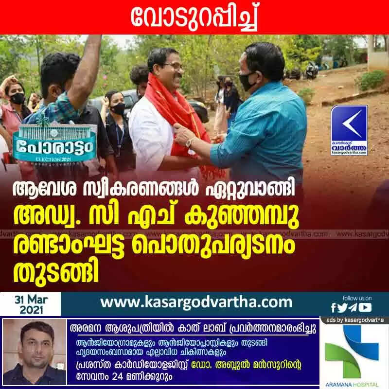 Keywords: Kerala, News, Kasaragod, Top-Headlines, Political party, Politics, Election, Niyamasabha-Election-2021, LDF, Adv. CH Kunjambu started the second phase of the public visit.