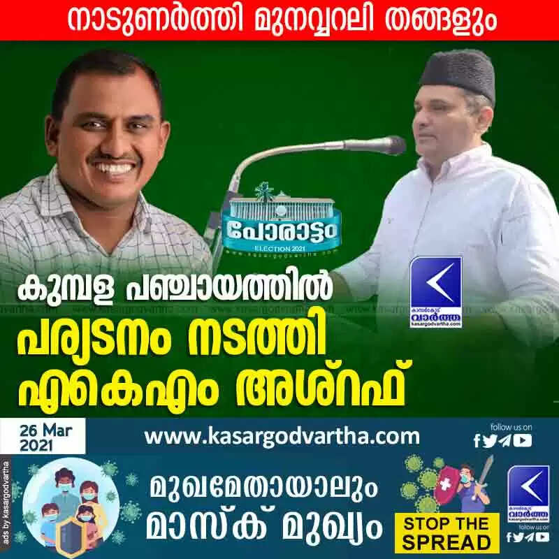 Keywords: Kerala, News, Kasaragod, Top-Headlines, Political party, Politics, Election, Niyamasabha-Election-2021, UDF, Munawar Ali Shihab Thangal, AKM Ashraf visits Kumbala panchayath; Munavvarali thangal joins.