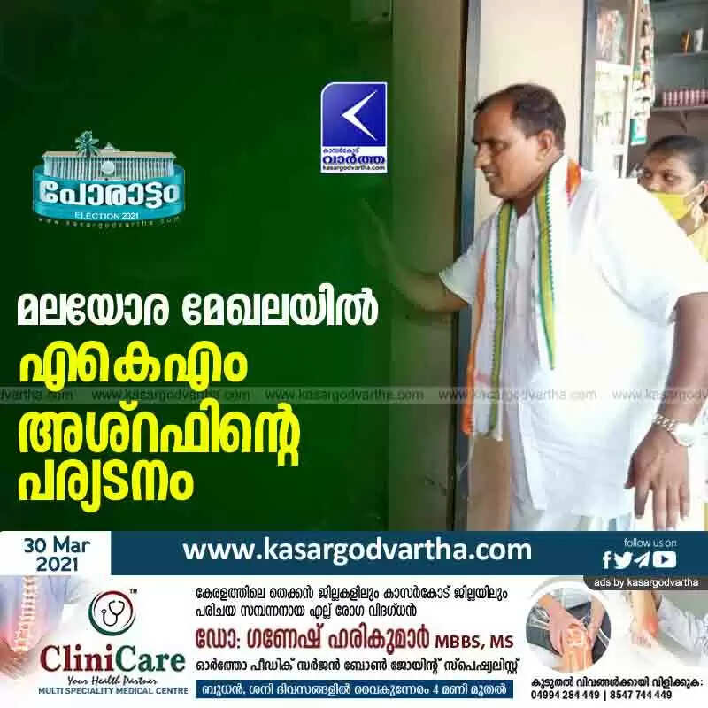 Keywords: Kerala, News, Kasaragod, Top-Headlines, Political party, Politics, Election, Niyamasabha-Election-2021, UDF, AKM Ashraf's election campaign visit on hilly region.