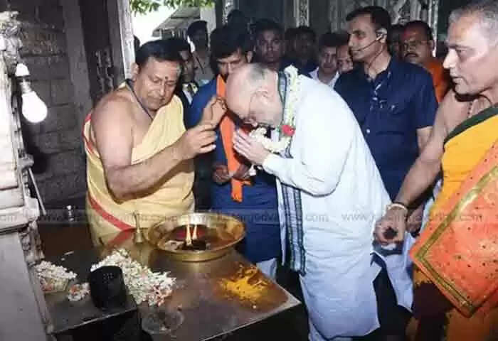Keywords: News, Top-Headlines, Manglore, Politics, Amit Shah, Temple, Karnataka, Election, Helicopter, Administrative Oficer, Amit Shah offers prayers at Sri Chamundeshwari Devi Temple.