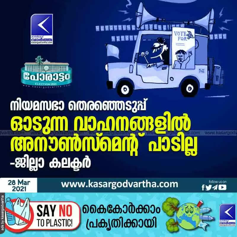 നിയമസഭാ തെരഞ്ഞെടുപ്പ്: ഓടുന്ന വാഹനങ്ങളിൽ അനൗൺസ്മെന്റ് പാടില്ല - ജില്ലാ കലക്ടർ
