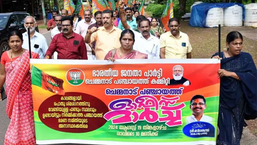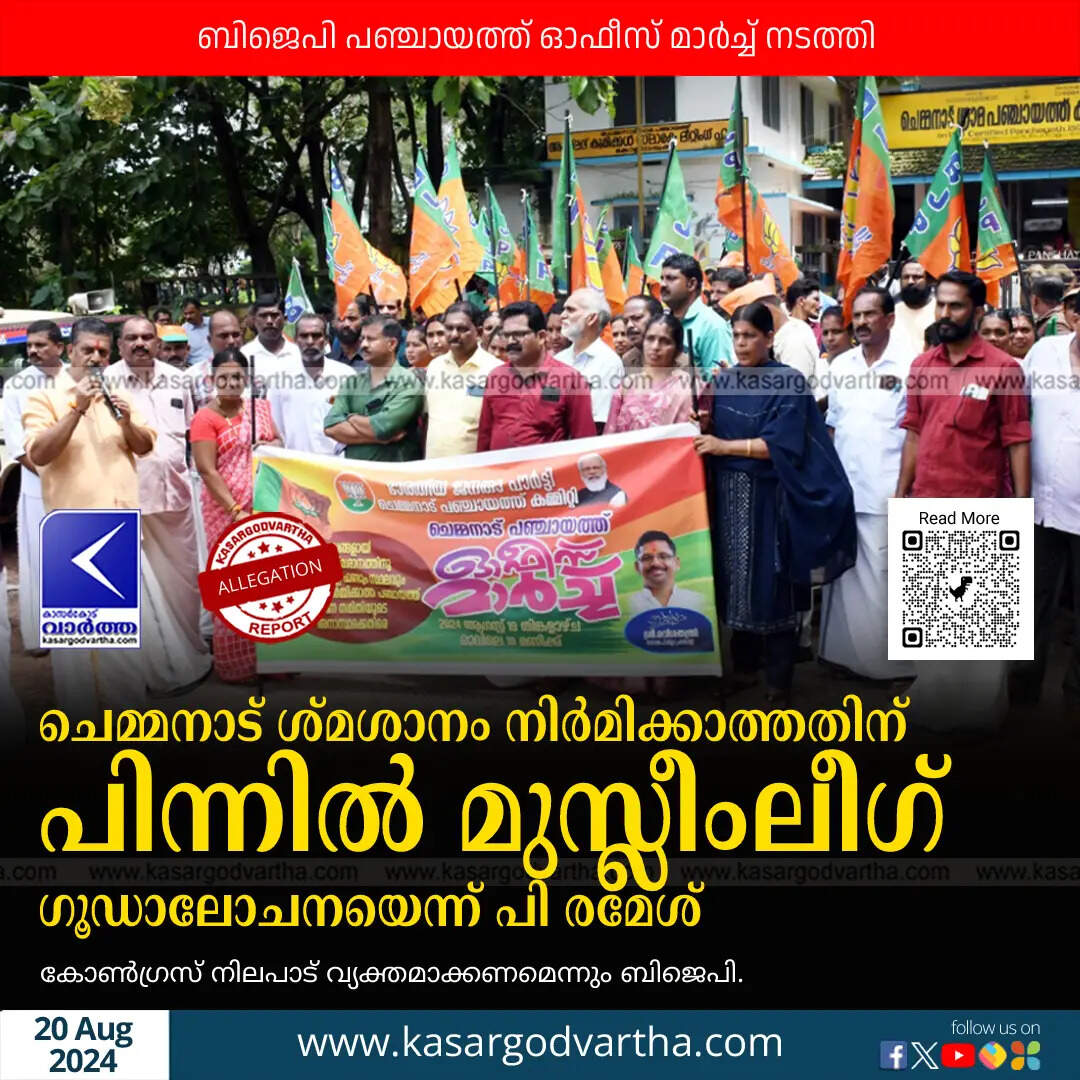 Allegation | ചെമ്മനാട് ശ്മശാനം നിർമിക്കാത്തതിന് പിന്നിൽ മുസ്ലീംലീഗ് ഗൂഡാലോചനയെന്ന് പി രമേശ്; ബിജെപി പഞ്ചായത്ത് മാർച്ച് നടത്തി