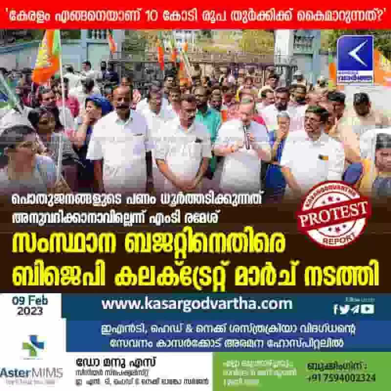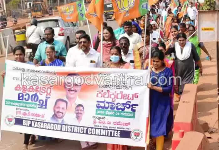 Keywords:  Latest-News, Kerala, Kasaragod, Top-Headlines, Protest, BJP, Kerala-Budget, Budget, Political-News, Politics, CPM, Collectorate, BJP held collectorate march.