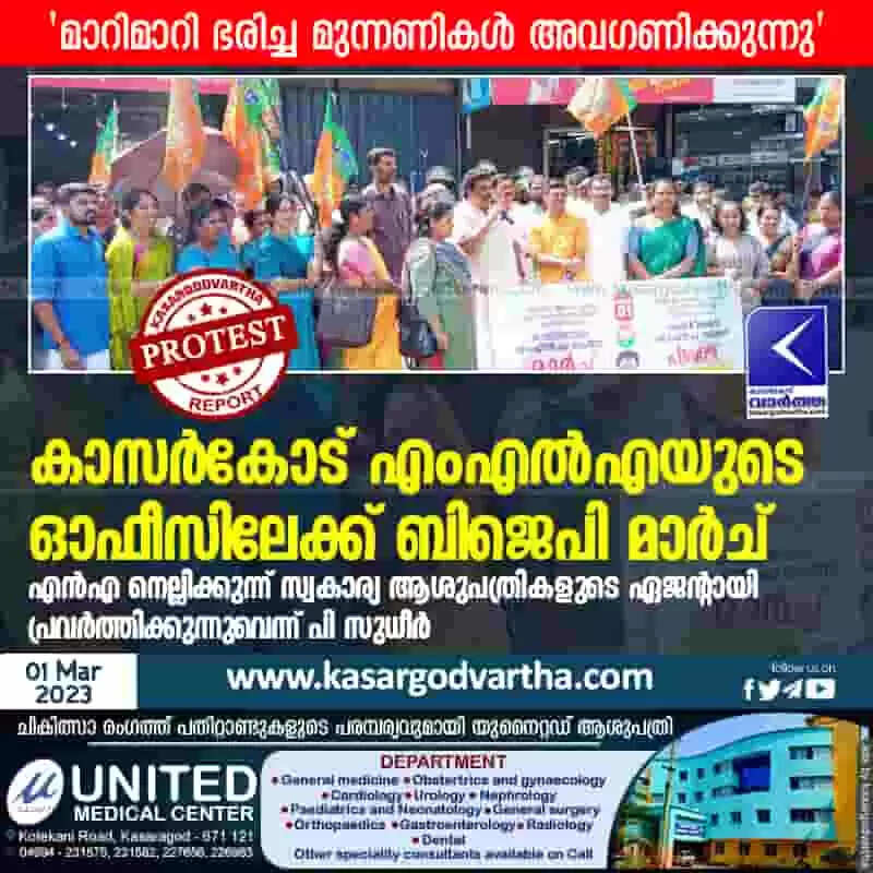 Keywords: Latest-News, Kerala, Kasaragod, Top-Headlines, Protest, BJP, N.A.Nellikunnu, Political-News, Politics, BJP, Muslim-league, Hospital, BJP march to Kasaragod MLA's office.