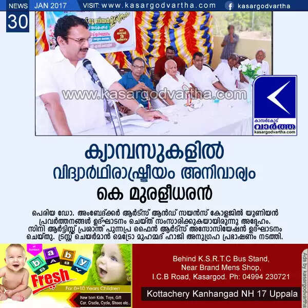Keywords: College, Students, Politics, kasaragod, Kerala, Periya, K.Muraleedharan, KPCC-president, Dr. Ambedkar Arts and Science College, Campus politics important in Colleges: K Muraleedharan