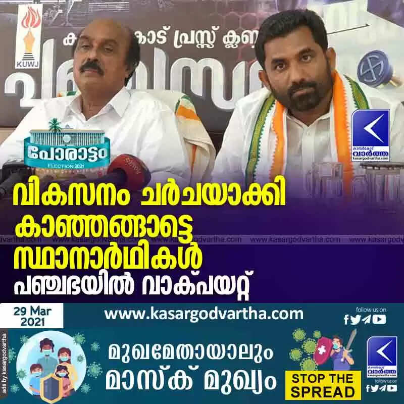 Keywords:  Kerala, News, Kasaragod, Top-Headlines, Political party, Politics, Election, Niyamasabha-Election-2021, Press Club, UDF, LDF, E.Chandrashekharan, P V Suresh, Candidates of Kanhangad discuss development in Punchasabha.