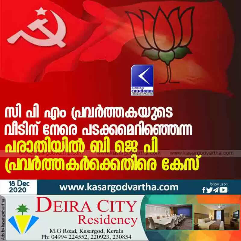 കാസർകോട്: (www.kasargodvartha.com 18.12.2020) സി പി എം പ്രവർത്തകയുടെ വീടിന് നേരെ പടക്കമെറിഞ്ഞെന്ന പരാതിയിൽ ബി ജെ പി പ്രവർത്തകർക്കെതിരെ കാസർകോട് ടൗൺ പോലീസ് കേസെടുത്തു. ബി ജെ പി പ്രവർത്തകരായ അജീഷ്, സുജിത്ത്, വരുൺ, ഭരത് എന്നിവർക്കെതിരെയാണ് കേസെടുത്തത്.