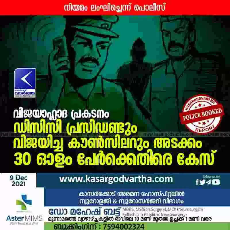 വിജയാഹ്ലാദ പ്രകടനം; ഡിസിസി പ്രസിഡണ്ടും വിജയിച്ച കൗൺസിലറും അടക്കം 30 ഓളം പേർക്കെതിരെ കേസ്