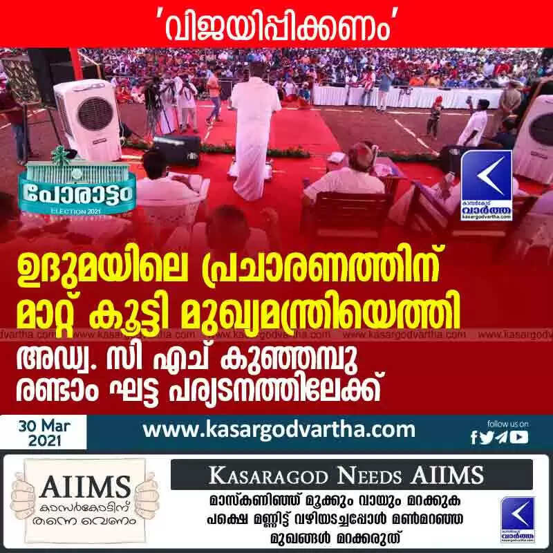 Keywords: Kerala, News, Kasaragod, Top-Headlines, Political party, Politics, Election, Niyamasabha-Election-2021, LDF, Pinarayi-Vijayan, Chief Minister arrives in Uduma to election campaign; Adv. CH Kunjambu to the second phase visit.