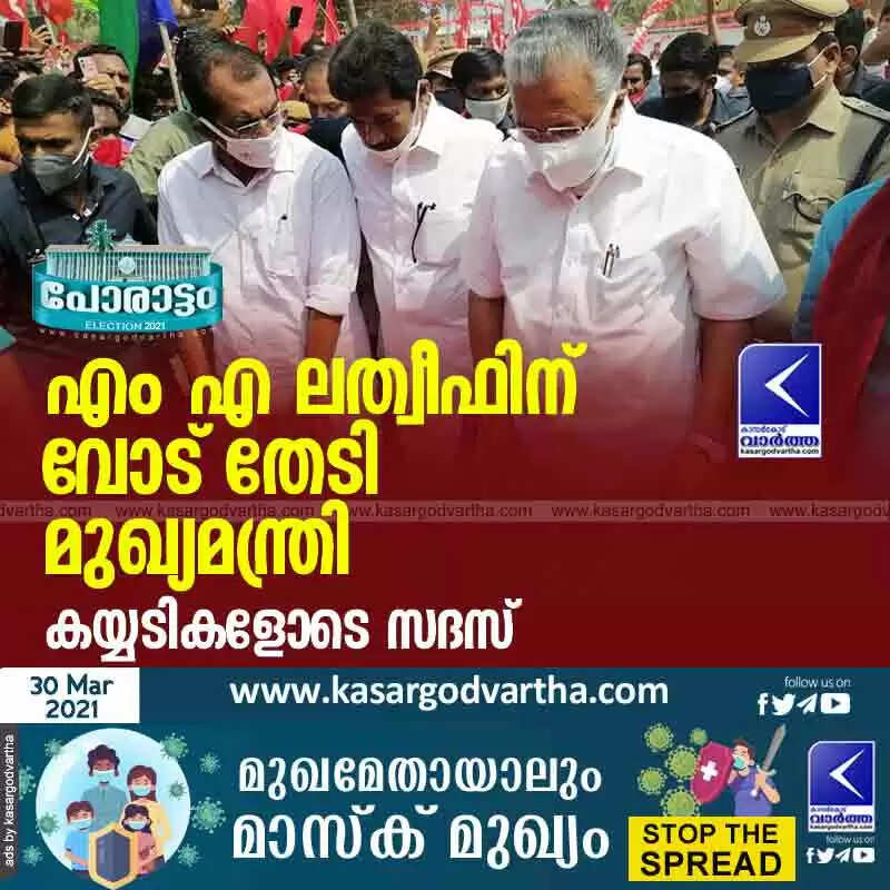 Keywords: Kerala, News, Kasaragod, Top-Headlines, Political party, Politics, Election, Niyamasabha-Election-2021, LDF, Pinarayi-Vijayan, M A Latheef, CM seeks vote for MA Latheef; The audience applauded.