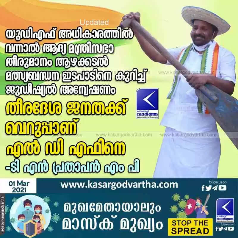 Keywords: Kerala, News, Kasaragod, Politics, Political party, UDF, LDF, Top-Headlines, Niyamasabha-Election-2021, Fishermen, Judicial inquiry into deep-sea fishing deal, first cabinet decision if UDF comes to power; Coastal people hate LDF: TN Prathapan MP.