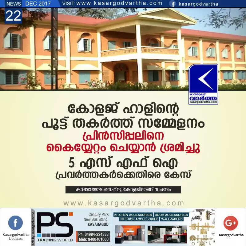Keywords: Kasaragod, Kerala, news, Kanhangad, Nehru-college, Conference, SFI, case, complaint, Top-Headlines, Politics, Conference in Hall after demolishing Lock; case against 5 SFI workers